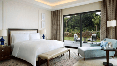 萬豪集團旗下經典奢華品牌麗思卡爾頓酒店在國內首座高爾夫度假酒店—??邴愃伎栴D酒店別墅客房為您華麗開啟“高球與度假相融合的奢華體驗新風尚”。這16棟別墅建造在火山噴發形成的熔巖石漠之上,毗鄰壯闊迷人的黑石球場,被赫赫有名的觀瀾湖高爾夫球會環繞,眺望而去是一幅由嶙峋的巖層地貌、繁茂的熱帶叢林植被、廣袤的湖泊及大片濕地構成的令人莞爾的奇觀美景圖,為高球愛好者及旅行者提供遠離喧囂的富有個性化的度假方式及體驗,詮釋奢華旅行新風尚。