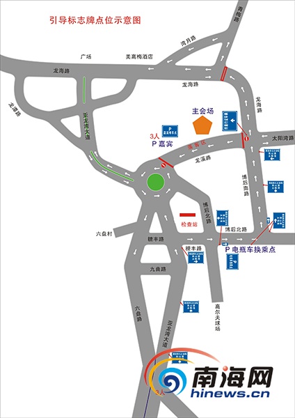 三亞交警支隊提醒:需從亞龍灣龍溪路前往亞龍灣龍海路、太陽灣路的車輛,繞博后路通行,或從亞龍灣大道繞行;參加亞洲電視彩虹獎頒獎典禮未取得通行證的車輛,一律停放在玫瑰谷停車場,再乘坐免費接駁電瓶車前往亞龍灣會展中心,散場時乘坐接駁車到玫瑰谷停車場取車;需從龍海路-龍溪路往亞龍灣環島方向通行的車輛,一律繞亞龍灣中心廣場-亞龍灣大道-亞龍灣環島方向通行。