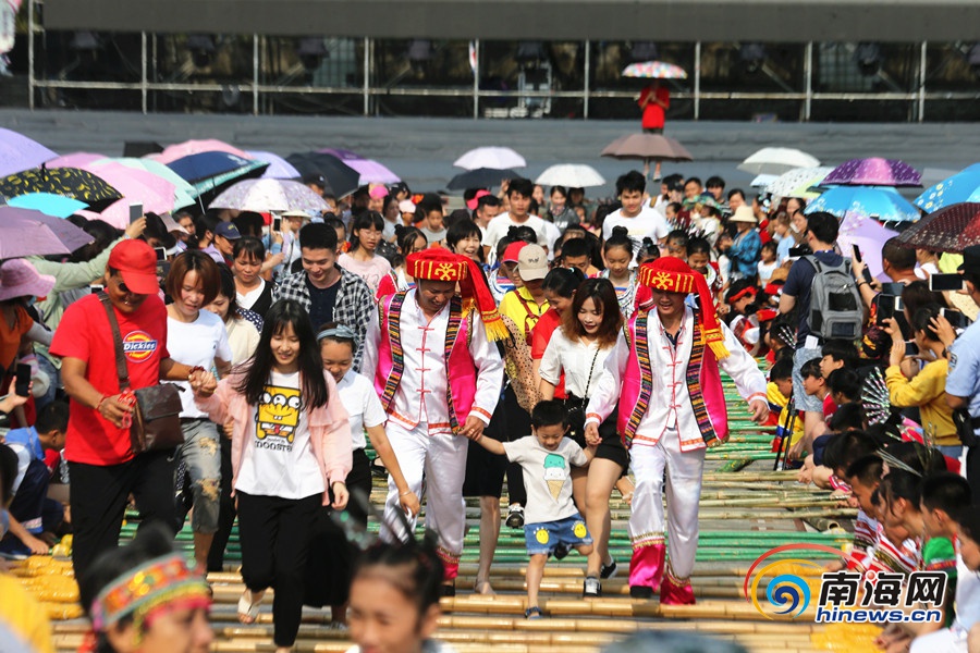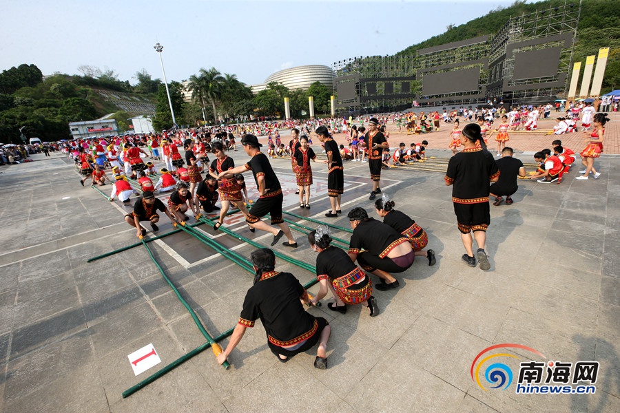 瓊中萬人齊跳竹竿舞,共慶“三月三”節慶。南海網記者陳望 攝