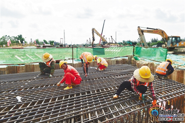 近日,在海口市江東新區(qū)白駒大道改造及東延長(zhǎng)線項(xiàng)目建設(shè)現(xiàn)場(chǎng),工人們揮汗勞碌,隨處可見(jiàn)火熱的施工場(chǎng)景。