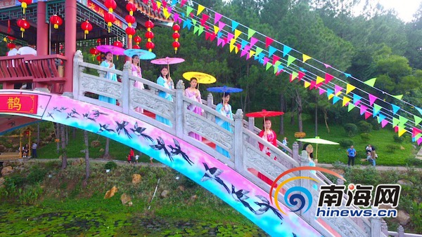 據了解,甜愛文化園是以弘揚中華傳統愛情文化的主題園區,由著名書法家李本松先生題字,全園占地40畝。甜和愛寄予了人們對感情最美好的向往和期待。園區內有月老殿、鵲橋、雙喜大雁門、連理路、愛情坡、龍鳳亭、淑女亭、好逑亭、中華傳統婚禮藝術廊、比翼亭、同心鎖等多個景點,使整個甜愛文化園處處充滿了愛情文化的氣息。甜愛文化園的開園將大幅度提升文筆峰景區的美譽度,亦將成為海南旅游的一道靚麗的風景線。游客紛紛表示,七夕節游甜愛文化園,用中國傳統的方式秀恩愛更加時髦。
