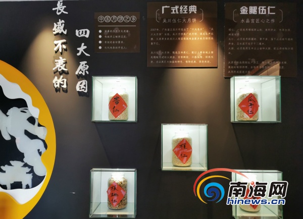 海口水晶宮月餅文化微型體驗館展示了五仁月餅的主要原料。圖片來源:海南水晶宮