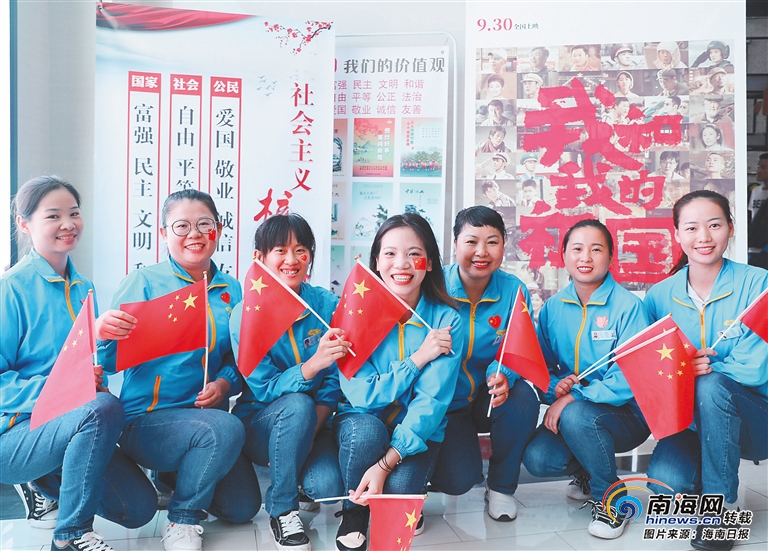10月1日,三亞蜈支洲島景區(qū)組織員工集體觀影《我和我的祖國(guó)》,共度國(guó)慶佳節(jié)。海南日?qǐng)?bào)記者 武威 通訊員 陳文欣 攝