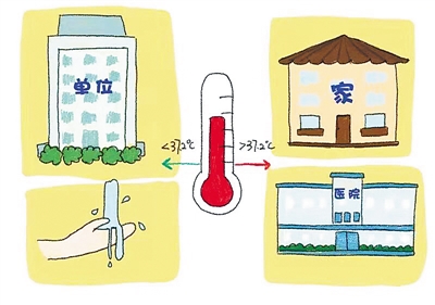 進(jìn)入辦公樓前自覺(jué)接受體溫檢測(cè),體溫正常可入樓工作,并到衛(wèi)生間洗手。若體溫超過(guò)37.2℃,請(qǐng)勿入樓工作,并回家觀察休息,必要時(shí)到醫(yī)院就診。