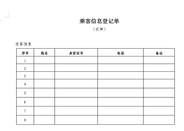 (三)乘客須持身份證乘車并配合司乘人員做好信息登記,填寫(xiě)乘客信息登記單(附件3),否則司乘人員將拒絕其乘車。
