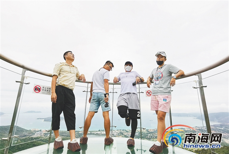 “超燃荷爾蒙”直播小分隊(duì)在亞龍灣全海景玻璃棧道。