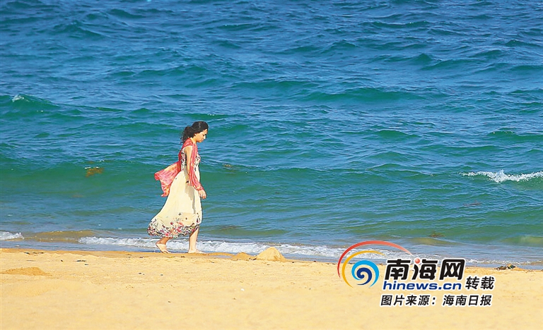 在三亞海邊漫步的游人。 海南日報記者 張杰 攝