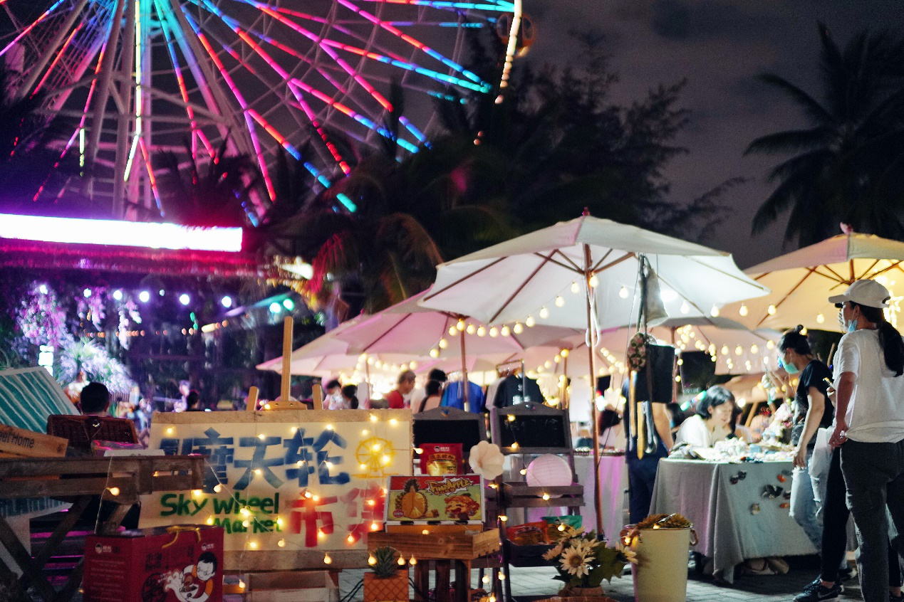 2020年5月1日,一場極具海島風情的覓島摩天輪市集在萬綠園民俗風情街盛大啟幕,現場匯集了海南文創IP、手藝人、本土獨立品牌近50個攤主,同時這次活動也吸引了本土知名原創IP:波波椰、海島兄弟、夏樂酷、島留時光等文創品牌的參與,為這次活動增加了不少本土特色文化亮點。據主辦方統計,三天的活動吸引了數萬市民游客前來趕集,現場熱鬧非凡。