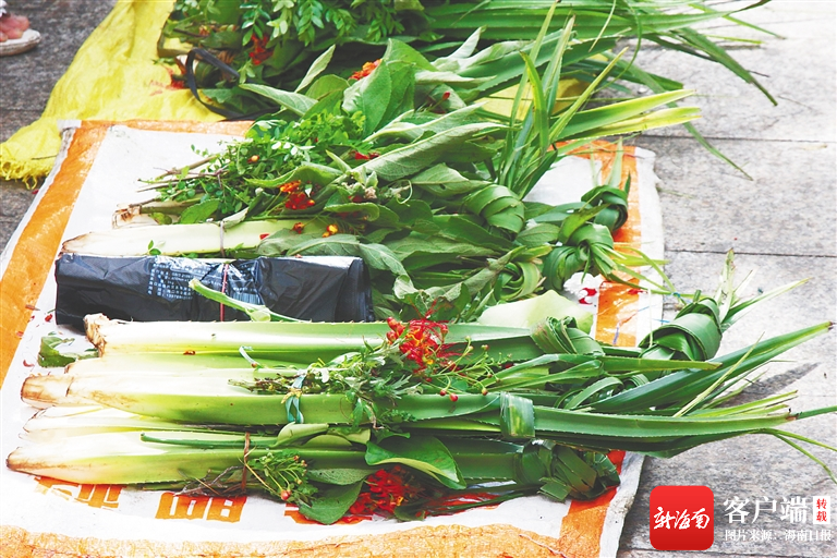 端午節(jié)前,三亞農(nóng)貿(mào)市場(chǎng)售賣的艾葉等。特約記者 孫清 攝