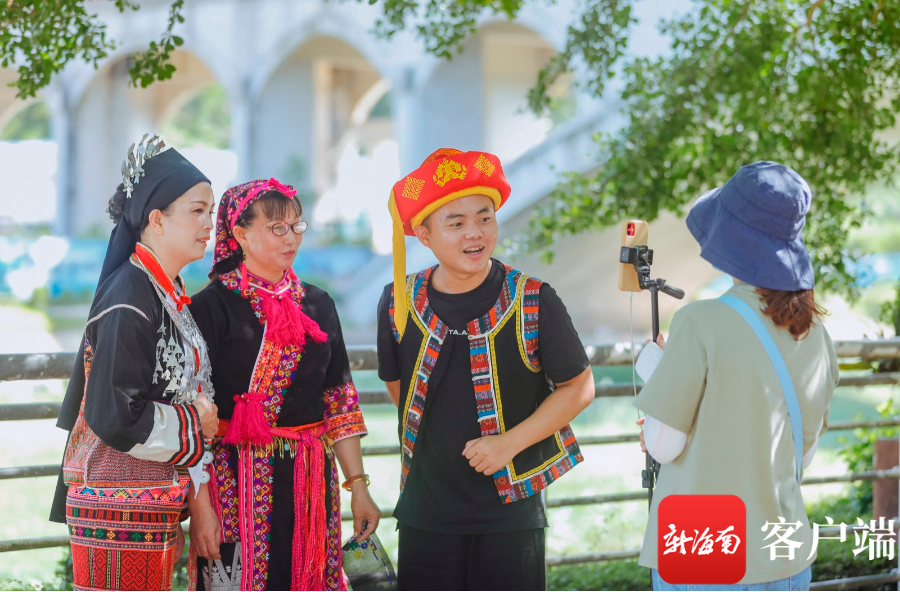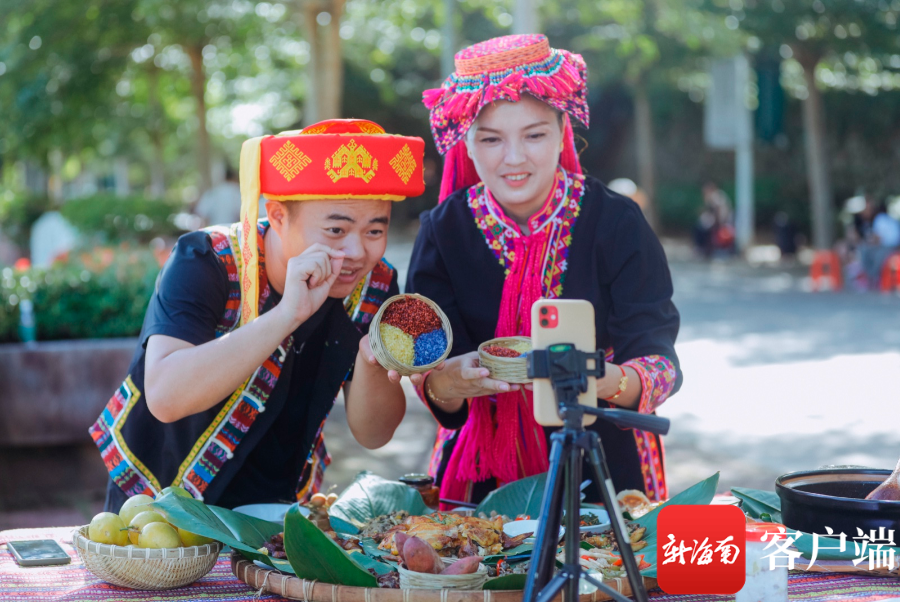 瓊中當地主要少數民族為黎族、苗族。少數民族給瓊中帶來了人文氣息濃厚的非遺文化,特制黎錦、苗服、自制手工錦織特色服裝,展現了她們獨特的民族文化魅力,當地的服飾更是充滿了藝術感和歷史感。直播現場, 寶島阿林和瓊中文化館副館長王清芳、上海起承文化非遺文化官周新一起,帶著直播間觀眾感受海南非遺文化背后的故事。竹竿舞、黎錦苗繡、特色苗舞……一系列具有鮮明海南特色的非遺文化展示,讓直播間觀眾大飽眼福。