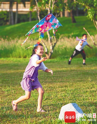 6月26日,海口鳳翔濕地公園,小朋友在興高采烈地玩耍,度過一個多彩的假期。 海南日報記者 袁琛 攝