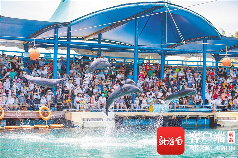 6月26日,游客在陵水黎族自治縣分界洲島景區觀賞海豚表演。該景區還推出住宿優惠活動,讓游客更好地體驗海島風光。海南日報記者 李天平 攝