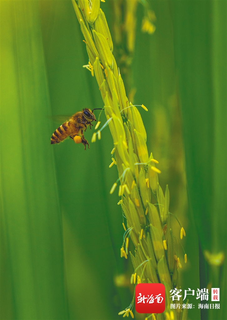 海水稻花香,引得蜜蜂來。