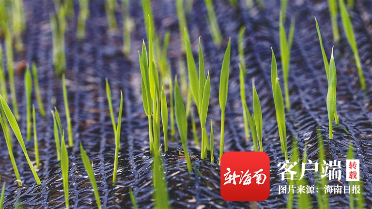 剛剛抽芽的海水稻秧苗。