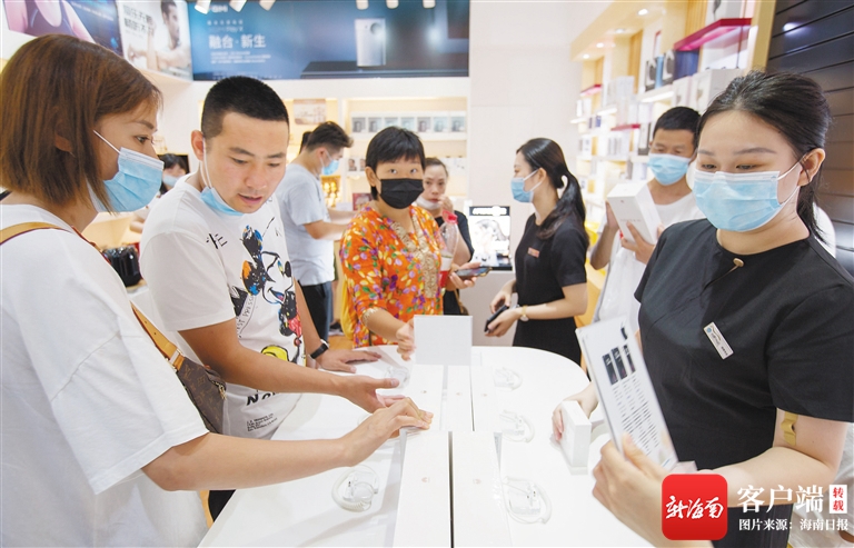 游客在三亞國際免稅城選購電子消費品。武昊 攝