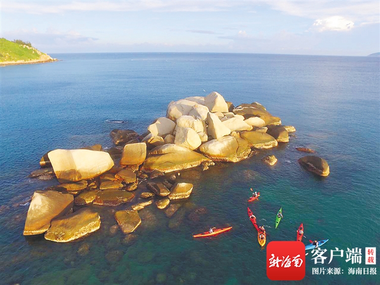 皮劃艇玩家在萬寧加井島附近海域劃艇。(照片由海口市皮劃艇協(xié)會(huì)提供)
