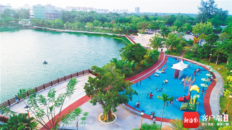 7月9日,文昌市文城鎮霞洞湖公園,不少市民在公園漫步,享受美好時光。