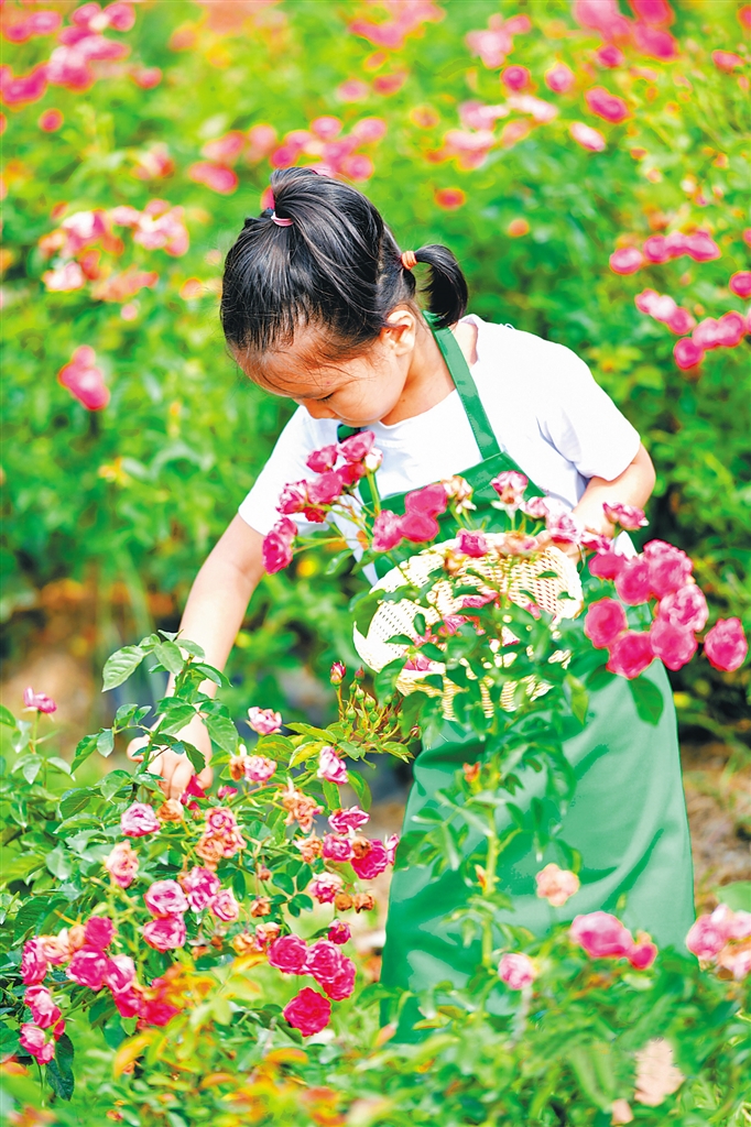 小游客在采摘可食玫瑰。(景區供圖)