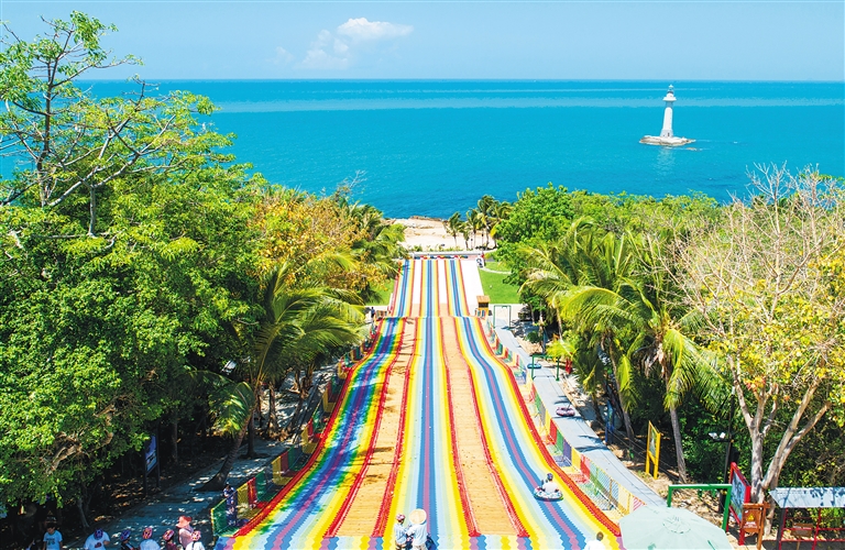 游客在三亞大小洞天景區體驗“彩虹滑道”項目。海南日報記者 武威 攝