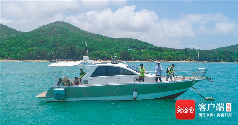 三亞天涯海角景區,游客乘坐游艇出海。海南日報記者 袁琛 攝