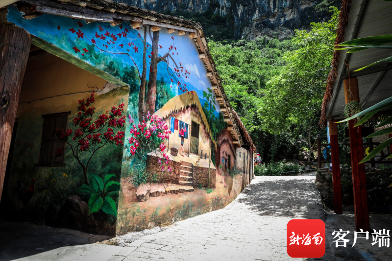 三派村民宅景觀,將墻繪藝術與當?shù)刈匀弧⑷宋沫h(huán)境、黎鄉(xiāng)故事相互結(jié)合,打造了“流動的黎族文化博物館”。記者 姚皓 攝