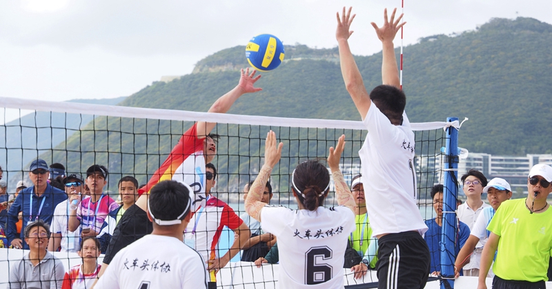 2019年沙灘職工運動會,一場激烈的沙灘排球賽正在進行。