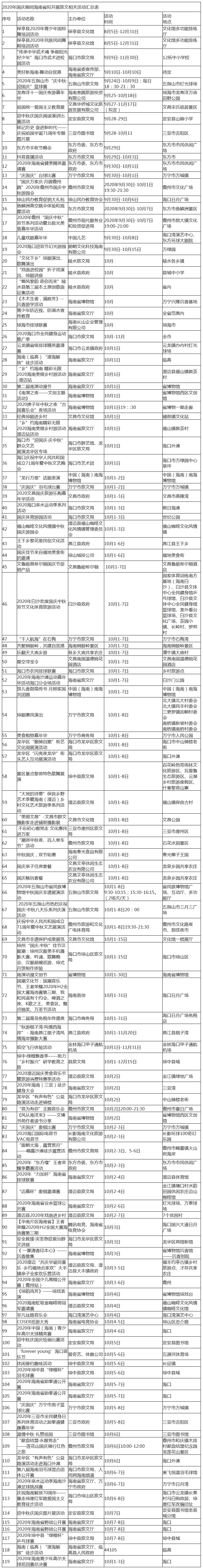 附:2020年國慶期間海南省擬開展旅文相關活動匯總表