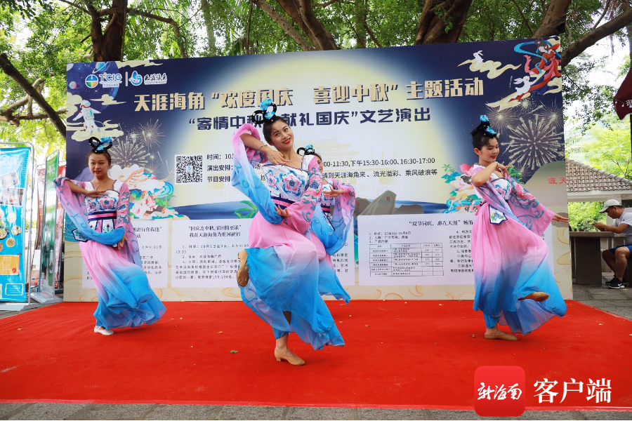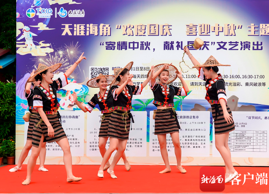與此同時,在天涯海角星廣場和天涯石廣場,精彩紛呈的文藝表演輪番上演,極具異域風情的肚皮舞、輕盈靈動的古典舞、活力無限的現代舞、充滿本地特色的竹竿舞……讓游客穿越時空感受到不同文化的魅力,活動現場喜慶歡樂、熱鬧非凡。