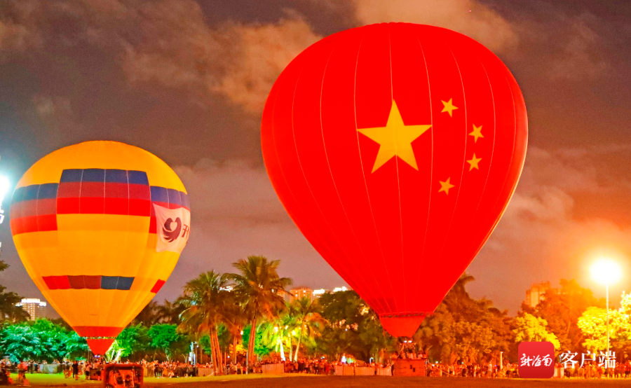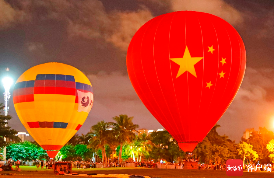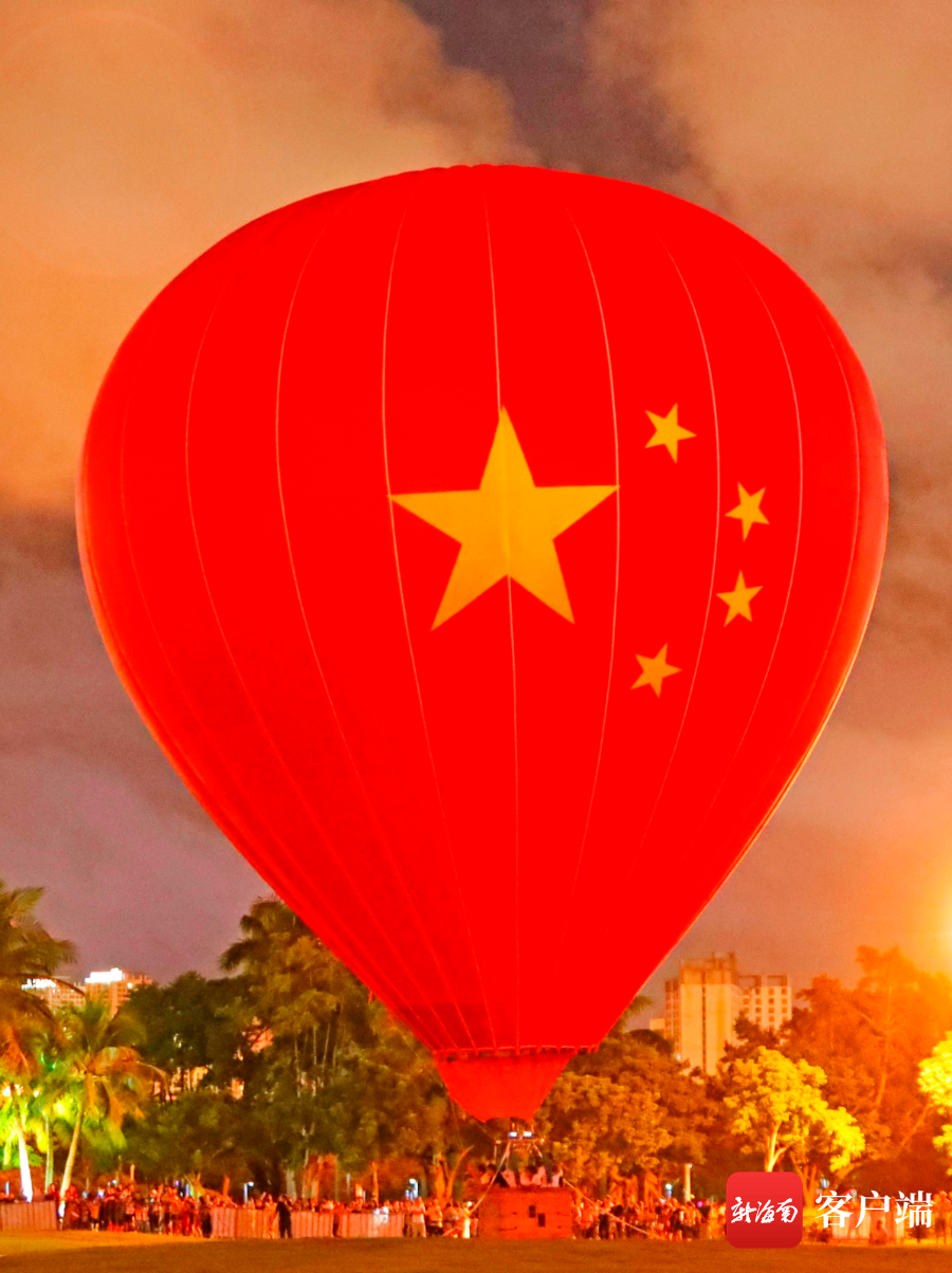 活動現場,熱氣球上五星紅旗的圖樣清晰展現,市民游客紛紛拿出手機、相機,記錄這激動人心的一刻。璀璨奪目的多彩夜景,折射出椰城百姓滿滿的幸福。