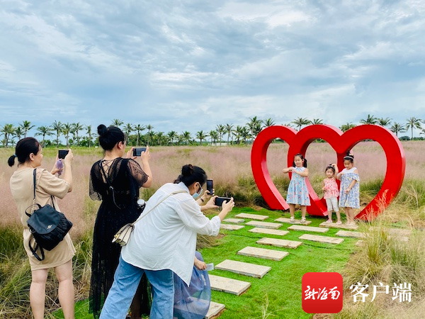 乘坐園區導覽車,一路上郁郁蔥蔥、花香四溢,很快就能看到海口熱門的“網紅”打卡點——粉黛亂子草花海,柔軟的粉黛在秋風中輕輕搖擺,“掀起”層層疊疊、如煙似霞的粉色波浪,讓人仿佛置身于浪漫的童話中,迫不及待拿出手機合影留念,用鏡頭記錄這美好的景象。