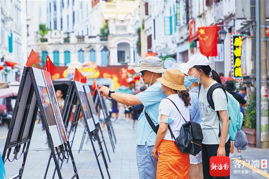 10月4日,游客在??隍T樓老街觀賞2020海南自貿(mào)港旅游攝影大賽作品展。海南日?qǐng)?bào)記者 封爍 攝