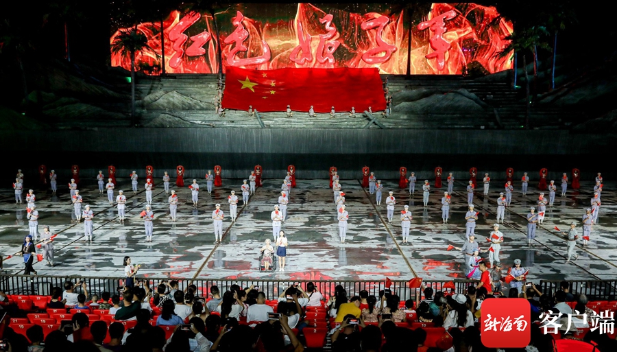 紅色娘子軍演藝公園內紅旗飄揚,使得整個園區洋溢在紅色的海洋中,園區內持續開展豐富多彩的體驗活動,讓游客在園區隨時體驗到歡樂的氛圍。“盛世輝煌·與你共舞”“盛世華誕·與你同慶”“盛世佳節·明月共賞”“盛世足跡·闊步前行”“紅歌嘹亮·旗幟飄揚”等精彩活動,讓游客重溫紅色經典。伴著歡快的音樂,身著紅軍服或民族特色服飾的演員們跳起了熱情洋溢的舞蹈,并與游客們親切合影,現場一片其樂融融的歡快景象。英姿颯爽的大刀舞、民族特色的竹竿舞等紅色歌舞匯演引得圍觀游客們一陣陣喝彩。通過對演藝節目的改版升級,大型椰海實景演出·紅色娘子軍,采用全息激光投影、裸眼3D、三維爆破、可升降冰屏等舞臺科技,讓“躺”著的歷史“站”起來,讓紅色精神“活”起來,游客和演員融為一體,共同沉浸在紅色海洋中,一起表達對祖國的熱愛。