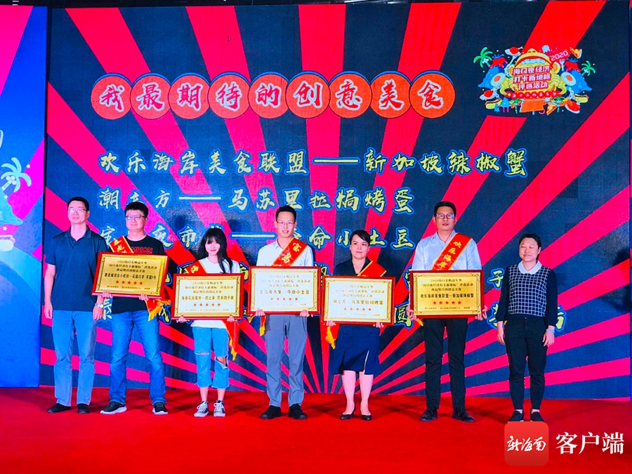 晚會現(xiàn)場,組委會對本次活動中最具人氣夜市、最具文化氣息夜市、夜市必吃榜、我最期待的創(chuàng)意美食等獲獎夜市及夜市美食進(jìn)行頒獎。其中,金盤夜市獲得“最具人氣夜市”獎項,潮立方獲得“最具文化氣息夜市”獎項,此外還有10款美食榮登“夜市必吃榜”,5款美食榮獲“我最期待的創(chuàng)意美食”稱號。堪稱現(xiàn)場版的海口夜市“米其林指南”。
