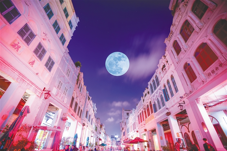 資料圖:??隍T樓老街夜景。海南日報記者 袁琛 攝