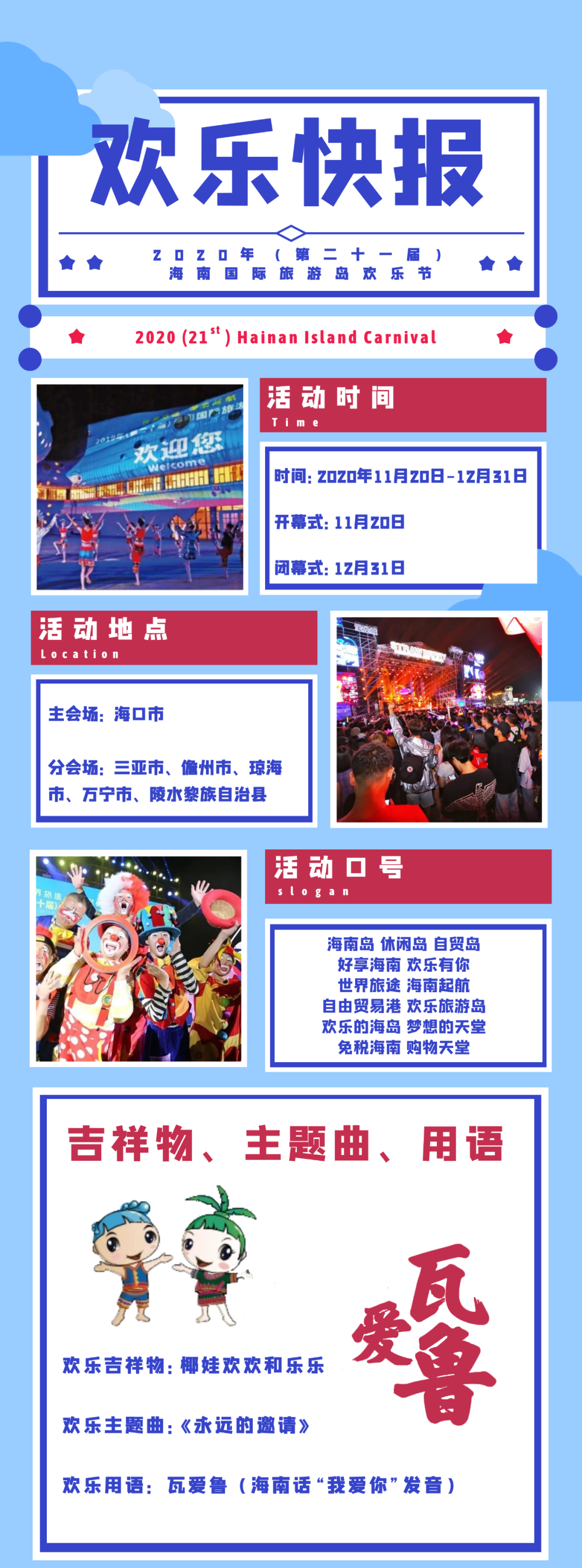新海南客戶端、南海網、南國都市報11月19日消息(記者鐘圓圓)一年一度的海南國際旅游島歡樂節來咯!11月20日,2020年海南國際旅游島歡樂節將正式啟幕。整個活動將持續至12月31日,來海南,帶你暢玩一個月。