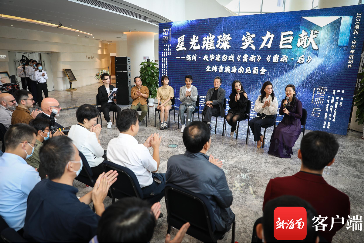 新海南客戶端、南海網(wǎng)、南國(guó)都市報(bào)11月26日消息(記者姚皓)11月26日,我國(guó)家喻戶曉的劇目《雷雨》《雷雨·后》全球首演海南見(jiàn)面會(huì)在??跒逞菟囍行呐e行。期間,該劇導(dǎo)演、法國(guó)著名戲劇導(dǎo)演埃里克·拉卡斯卡德,監(jiān)制、著名戲劇制作人王可然,主演劉愷威、何賽飛、史可等亮相現(xiàn)場(chǎng)與粉絲親切互動(dòng)。