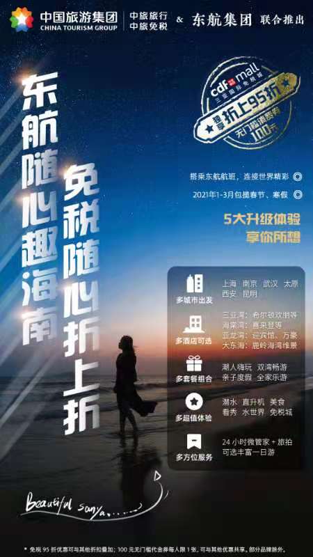 12月,海南迎來旅游旺季,中國旅游集團旗下中旅旅行、中旅免稅聯合東方航空推出了以“多城市出發、多酒店可選、多套餐組合、多方位服務”為特色的“東航隨心趣海南”全新自由行系列產品。