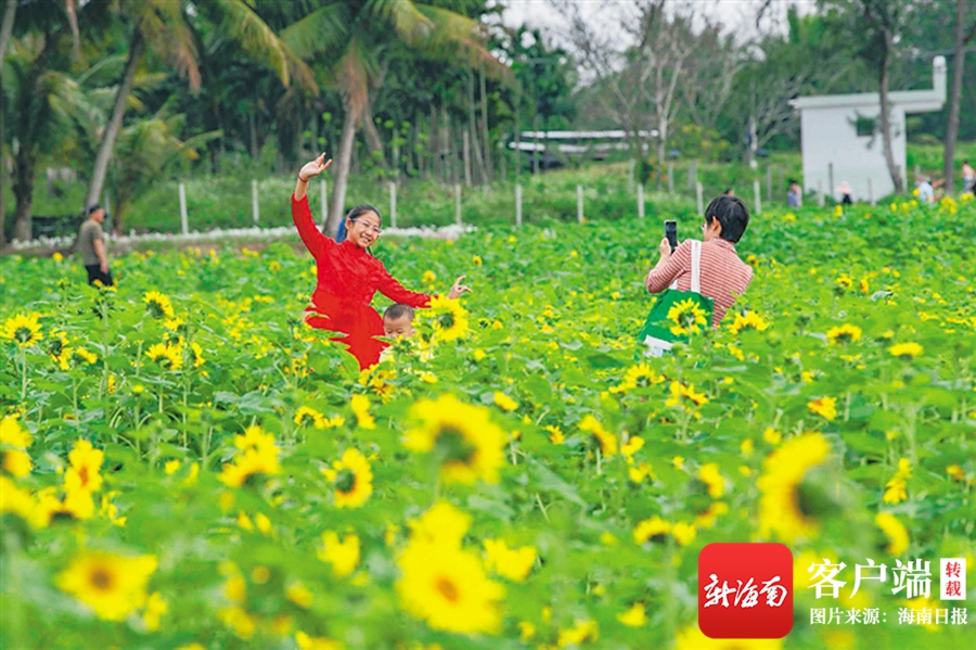 2月13日,在文昌市潭牛鎮三六坡村,游客游覽花海,感受鄉村新氣象。海南日報記者 袁琛 攝