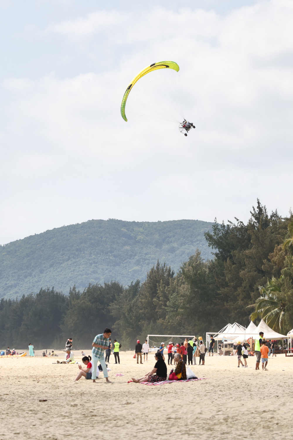 ↑2月21日,游客在海南萬(wàn)寧石梅灣沙灘上休憩。