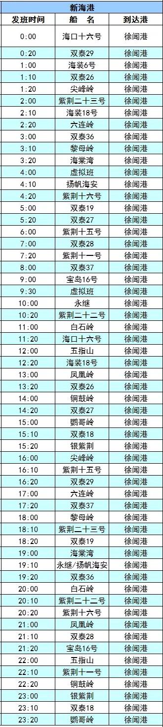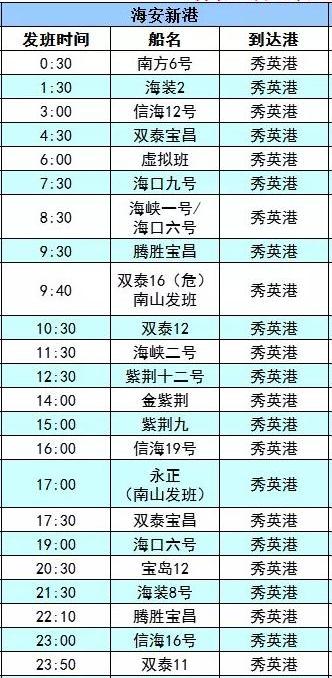 據(jù)介紹,海口至海安,新海港始發(fā)至徐聞港海上航行時間約60分鐘;秀英港始發(fā)至海安新港海上航行時間約90分鐘。海安至海口,徐聞港始發(fā)至新海港海上航行時間約60分鐘;海安新港始發(fā)至秀英港海上航行時間約90分鐘。具體航班信息以當(dāng)天發(fā)布航班為準(zhǔn),過海的司機(jī)、旅客可以通過“瓊州海峽輪渡管家”微信公眾號、“輪渡管家”App等方式查詢運(yùn)營班期表以及預(yù)約購票。