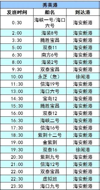 新海南客戶端、南海網(wǎng)、南國都市報3月19日消息(記者 王小暢)19日,記者從海口港航部門獲悉,2021年瓊州海峽客滾運(yùn)輸班輪化運(yùn)營班期表(海口—海安航線)18日已發(fā)布。18日起,海口秀英港、新海港兩港區(qū)合計每日出島航班高達(dá)81個航次,廣東徐聞港、海安新港兩港區(qū)合計每日進(jìn)島航班同樣高達(dá)81個航次。