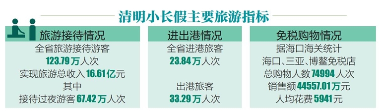 海南日?qǐng)?bào)海口4月5日訊 (記者趙優(yōu) 通訊員李藝娜)海南日?qǐng)?bào)記者4月5日從省旅文廳獲悉,清明假期期間,全省旅游接待游客123.79萬(wàn)人次,同比增長(zhǎng)160.6%,實(shí)現(xiàn)旅游總收入16.61億元,同比增長(zhǎng)464.7%。