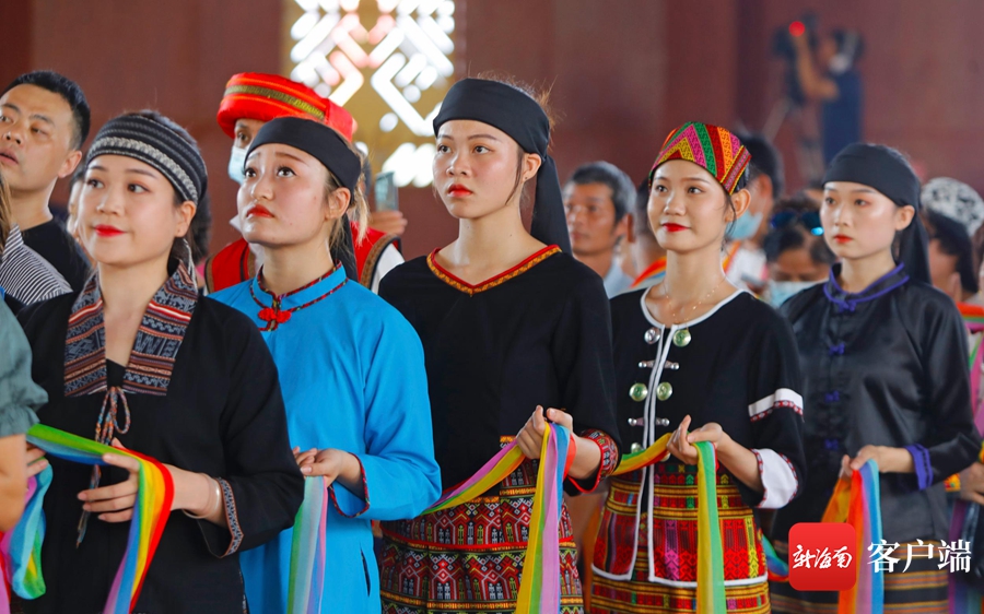 身穿黎族服飾的市民參加五指山市2021年祭祀袍隆扣大典。記者 汪承賢攝