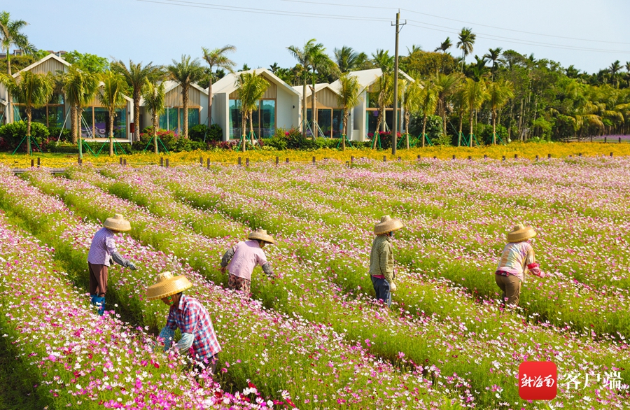 博鰲鎮南強村百畝花海內,村民在打理花草。記者 李昊 攝