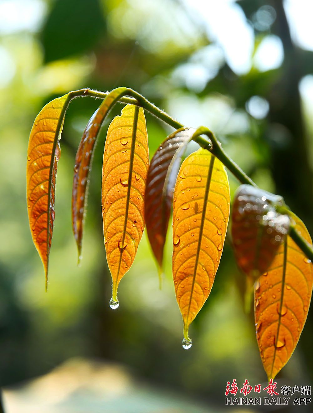 4月11日,瓊中百花嶺上滴水尖葉。海南日?qǐng)?bào)記者 蘇曉杰 攝