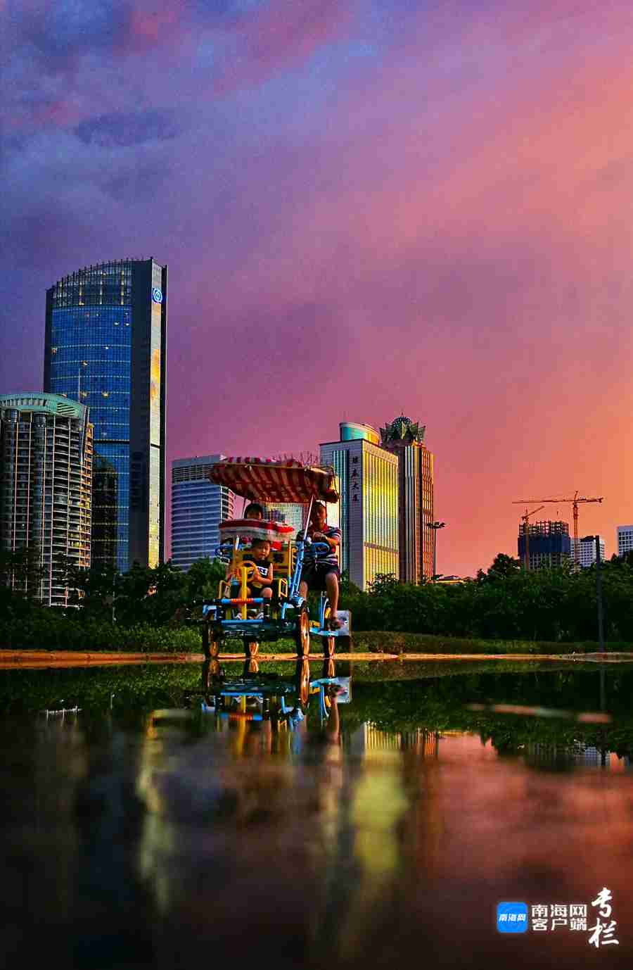 ????雨后的海口灣,夕陽(yáng)映照天空,色彩好似油畫一般↓↓↓