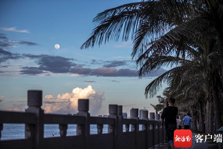 海口的天空中升起的一輪明月。記者 劉洋攝
