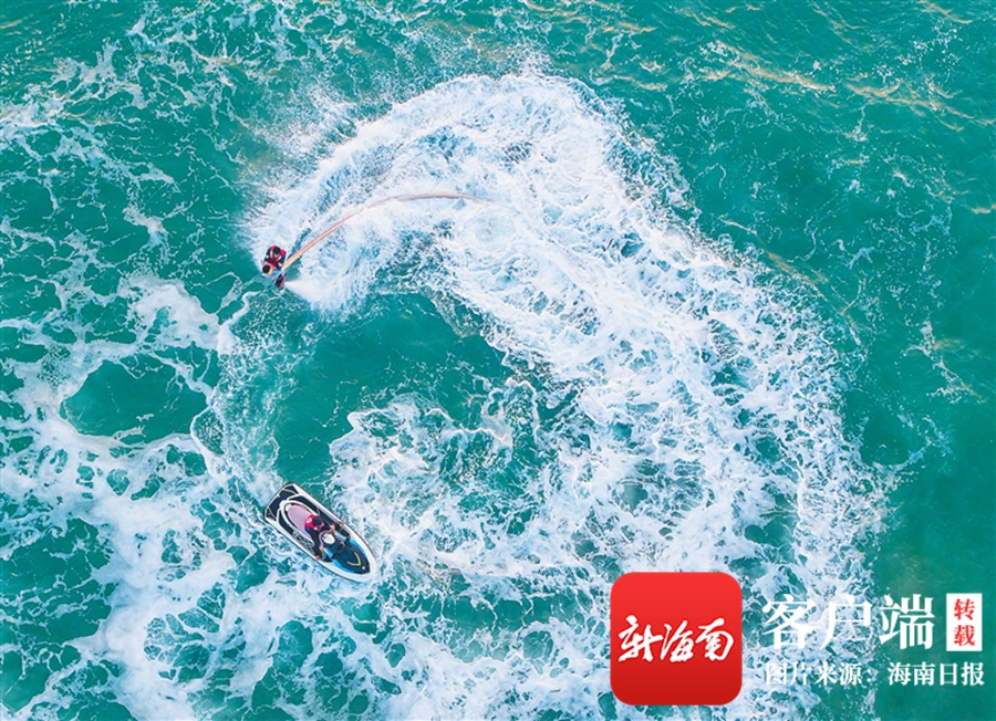 樂東黎族自治縣龍沐灣海邊,市民游客在體驗水上項目。海南日報記者 宋國強 攝