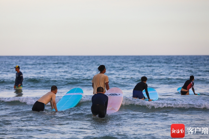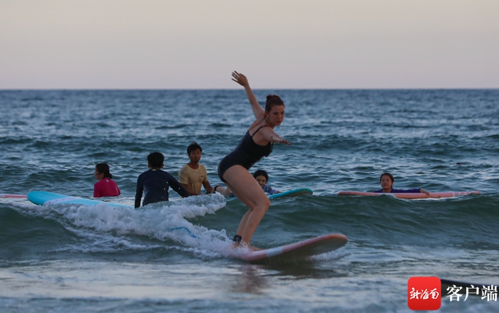 “海天一色,碧波蕩漾,這里的海真美……”17日下午,由海外傳播官、國內知名攝影師、航拍大咖、大V成員、記者編輯等組成的全媒體采訪團看到萬寧日月灣時感嘆道。隨后,嘉賓們在戒浪·不沖浪俱樂部換好裝備后,經過專業教練半個多小時的指導,北京周報社英文記者陶幸和其他網媒行成員抱著沖浪板,來到日月灣海邊嘗試沖浪。“這是人生中的第一次沖浪,本以為沖浪是非常困難的事,但是經過多次嘗試,我找到了技巧,踏著板沖起來了,真是太刺激了。希望有機會還來日月灣沖浪。”陶幸說。