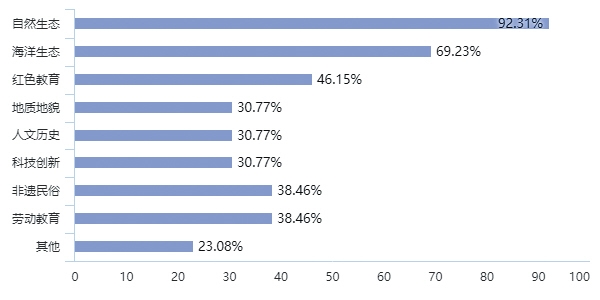 2.課程情況:海南省內研學機構在設置課程主題上對本土特色元素尤為鐘愛。研學機構最熱衷的三類課程為:自然生態(tài)、海洋生態(tài)及紅色教育。市場反饋來看,非遺民俗和勞動教育同樣受歡迎。